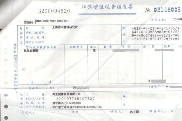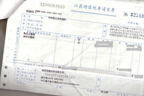 我司是我國最早推出石墨烯產品的公司之一,客戶主要是各大高校和中科院所及英國、美國、韓國、臺灣高校。廣大客戶對我司產品給予廣泛的好評。 為了增進新客戶對我司的了解,特選一小部分發票公布。
