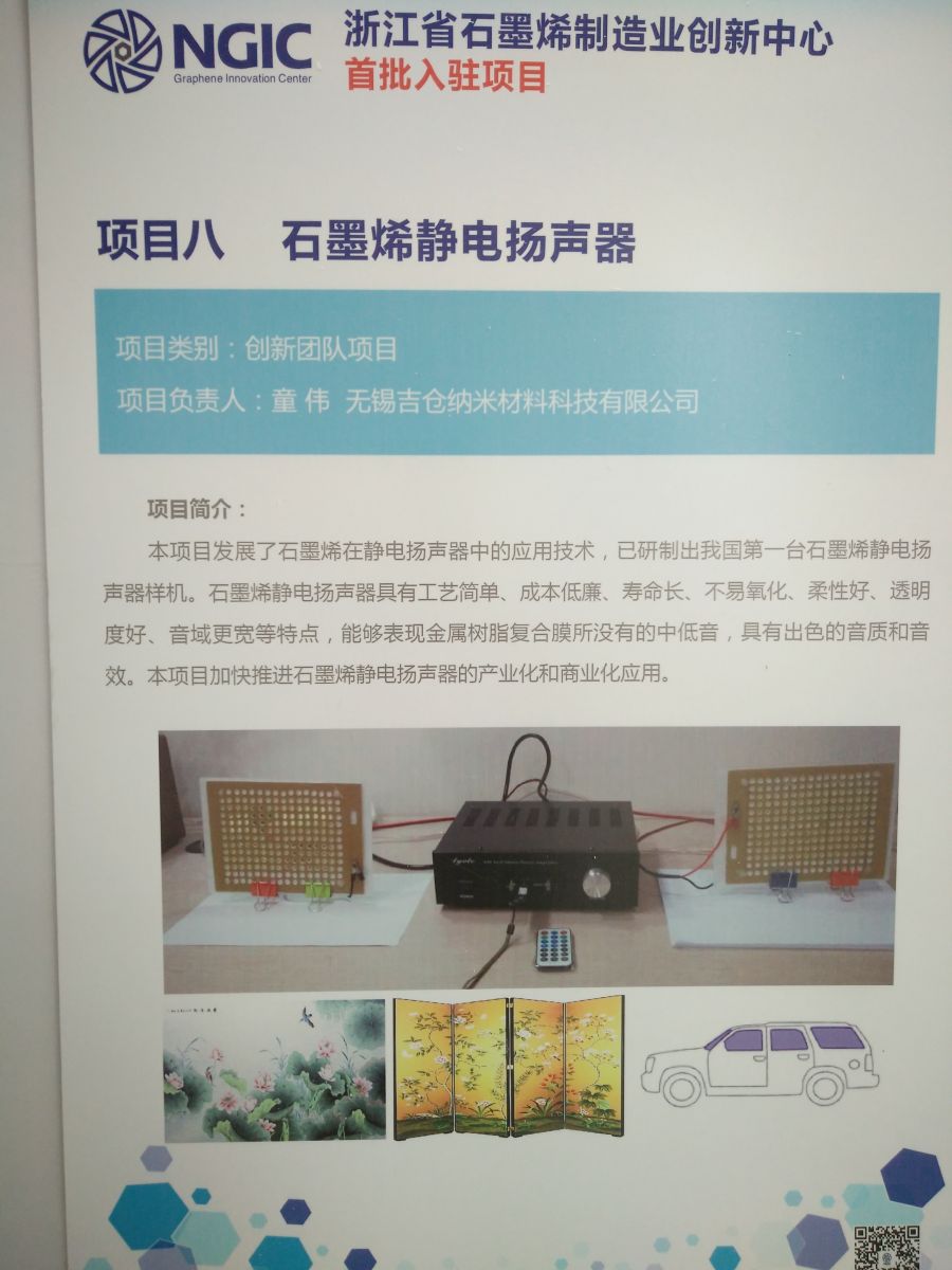 我公司石墨烯靜電揚聲器項目入駐浙江省石墨烯創新制造中心