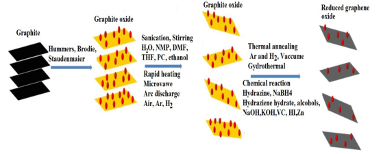 Figure 1. (a)石墨烯、(b)GO和(c)rGO的晶體結構。