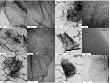 Figure 1. 用不同放大倍數獲得石墨烯樣品的TEM圖像。