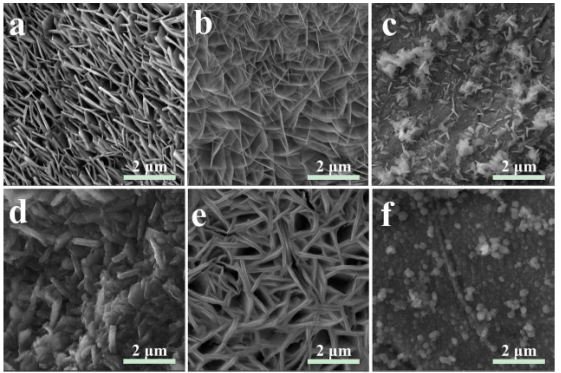 Figure 4.pH對形貌的影響研究以及循環200圈后的SEM圖。