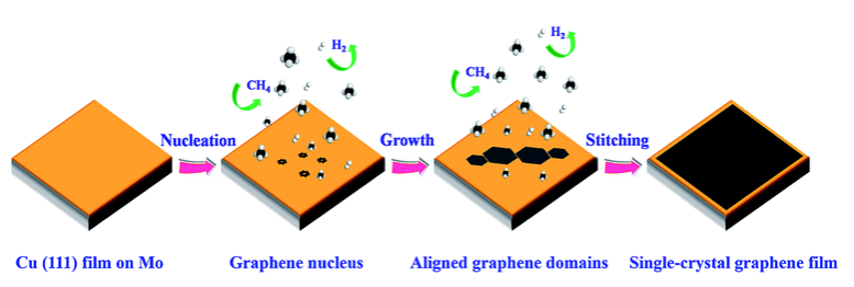 Fig. 1 單晶石墨烯薄膜生長(zhǎng)過程示意圖。