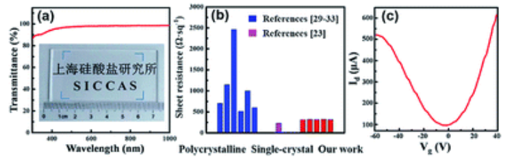 -1,光透射率高達(dá)97.6%。此外,單晶石墨烯薄膜的場(chǎng)效應(yīng)遷移率高達(dá)11500 cm