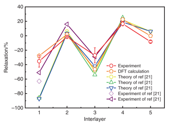 3的層間弛豫,以相應的本體間距的百分比表示。