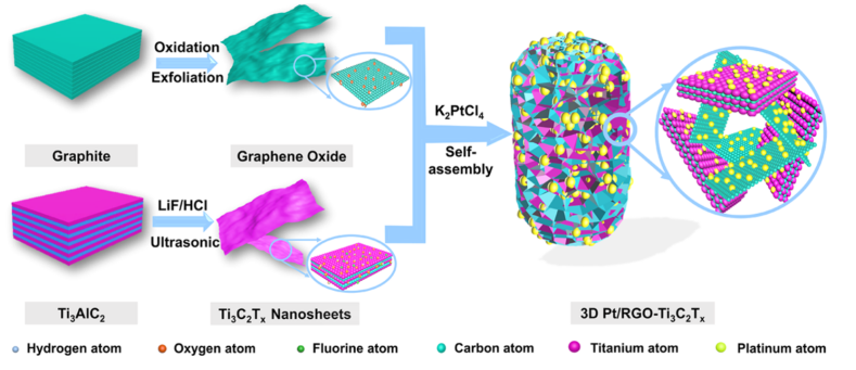具有低成本、高性能的鉑基電極催化劑的設(shè)計(jì)和構(gòu)建是直接甲醇燃料電池(DMFCs)領(lǐng)域發(fā)展的關(guān)鍵。在這里,我們報(bào)告了一種有效的自下而上的方法,該方法可通過(guò)采用石墨烯(RGO)和MXene(Ti