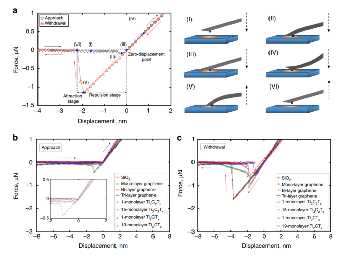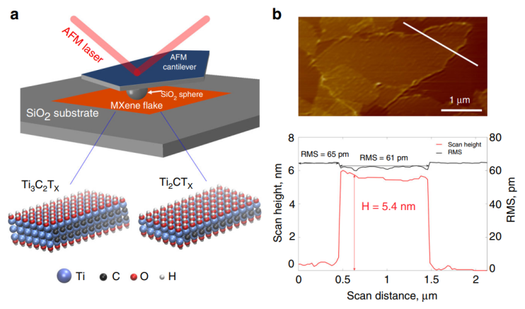 二維過渡金屬碳化物(MXenes)引起了研究界的極大興趣,因為他是較新發現的具有獨特電子和光學特性的一大類材料。對于MXene器件的制造和性能,了解MXene與各種基材之間的粘附力至關重要。本文報道AFM測量結果的兩個MXenes(Ti