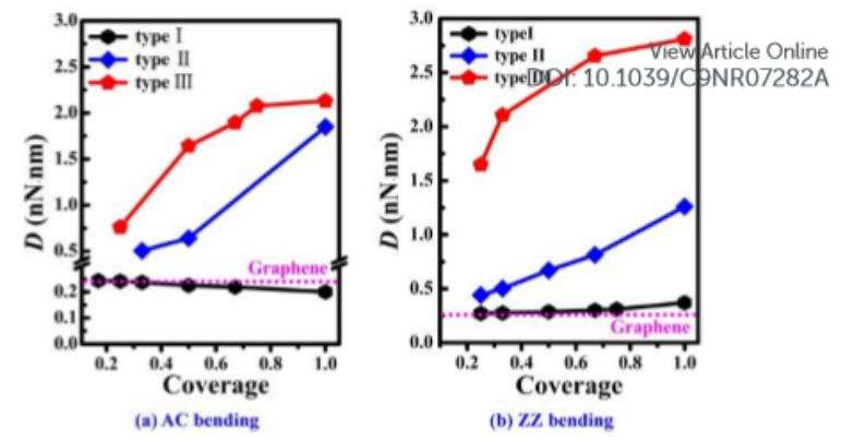 Fig. 4不同覆蓋范圍的氧化石墨烯在(a) AC和(b) ZZ彎曲方向上的彎曲模量D。