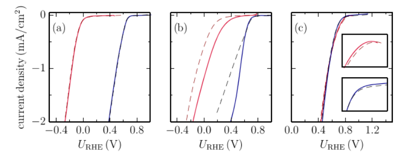 Figure 3.ORR陰極線性掃描伏安LSV曲線(實線代表在質(zhì)子化溶液,而虛線代表在氘化溶液)。