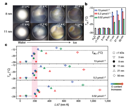 相關研究成果于2019年由中國科學院化學研究所王健君課題組,發表在Nature (https://doi.org/10.1038/s41586-019-1827-6)上。原文:Probing the critical nucleus size for ice formation with graphene oxide nanosheets