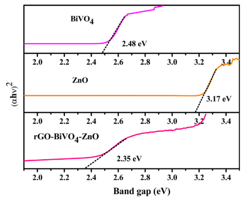 4-ZnO的帶隙能量為2.35 eV。相對于合成的ZnO,rGO-BiVO