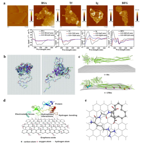Fig. 1 不同血清蛋白與石墨烯基質之間的多重相互作用介導了蛋白的結合和構象。