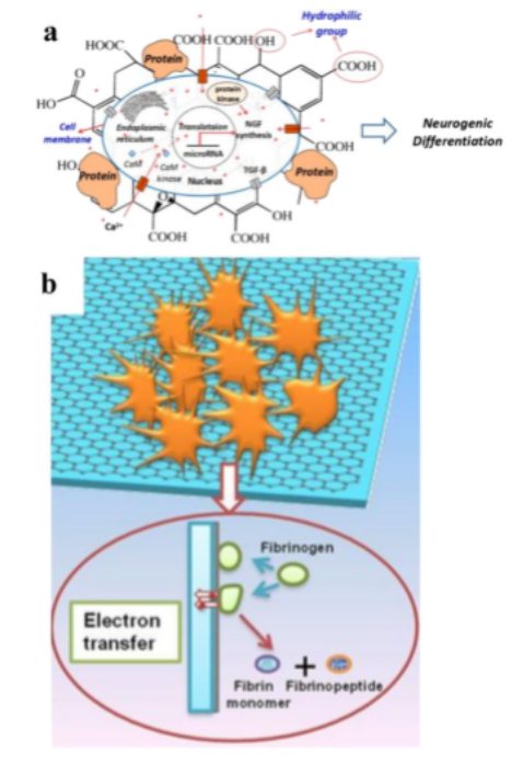 Fig. 4 氧化石墨烯化學影響蛋白質形態和細胞反應。