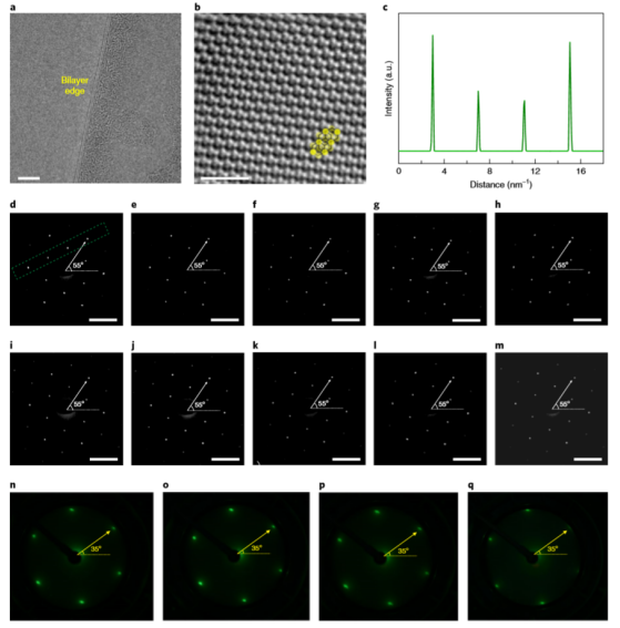 至今尚未報道大于1厘米的高質量AB堆疊雙層或多層石墨烯。在此,我們報道了用可控濃度的Ni制造和使用單晶Cu/Ni(111)合金箔,通過化學氣相沉積的方法生生長大面積,高質量AB堆疊雙層和ABA堆疊三層石墨烯薄膜。通過拉曼光譜和透射電鏡(包括選定的區域電子衍射和原子分辨率成像)對石墨烯薄膜的堆積順序、覆蓋范圍和均勻性進行了評估。電遷移(載流子遷移率和帶隙可調性)和熱導率(雙層石墨烯的熱導率值約為2,300 W m