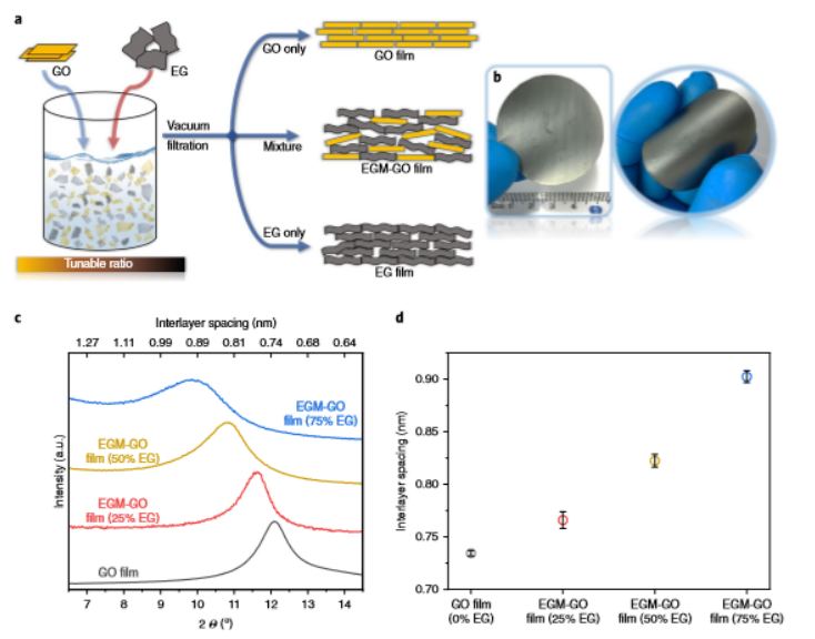 Fig. 1 具有可調(diào)層間間距的EGM-GO膜的制備。