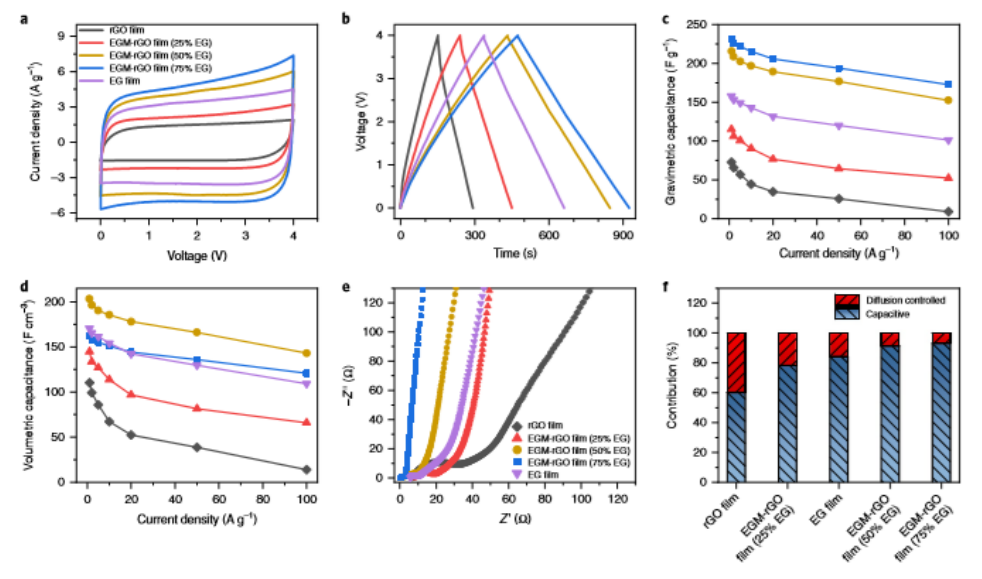 4中基于EGM-rGO薄膜的超級(jí)電容器的電化學(xué)表征。