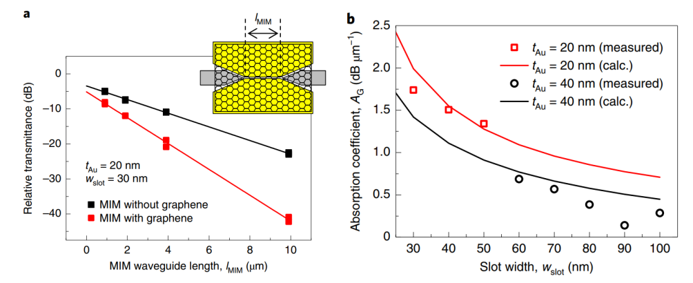 2)。由于極端的光限制,我們大大增強了石墨烯中的光學非線性吸收,并以35 fJ的開關能量和260 fs的開關時間,實現了超快的全光開關。開關能量比以前基于石墨烯的器件小四個數量級,并且是所有在幾皮秒或更短時間內運行的全光開關的最小值。該器件可以有效地連接到常規的硅波導,并可以用在硅光子集成電路中。我們相信,這種基于石墨烯的器件將為芯片的超快和高能效的光子處理鋪平道路。
