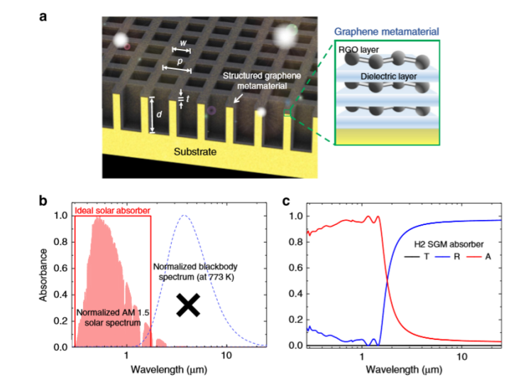 相關(guān)研究成果于2020年由斯威本理工大學(xué)Baohua Jia課題組,發(fā)表在Nature Communications(https://doi.org/10.1038/s41467-020-15116-z)上。原文:Structured graphene metamaterial selective absorbers for high ef?ciency and omnidirectional solar thermal energy conversion