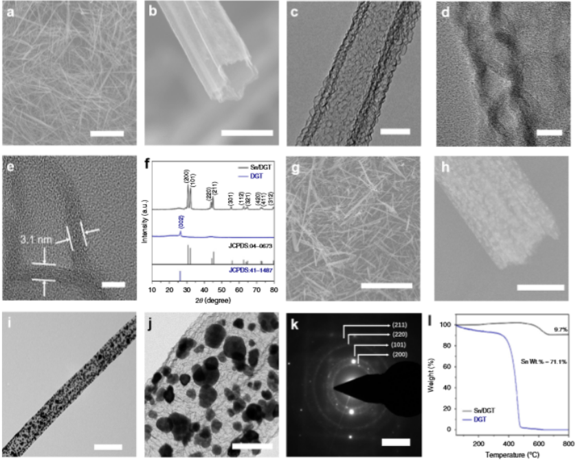 Fig. 1用于高性能負極Sn/DGT的合成原理圖。
