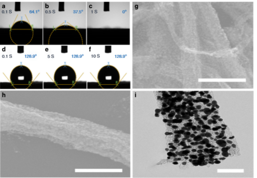 Fig. 3 水在氮摻雜和未摻雜石墨烯管上的潤濕過程以及親水性對SnO2選擇性生長的影響。