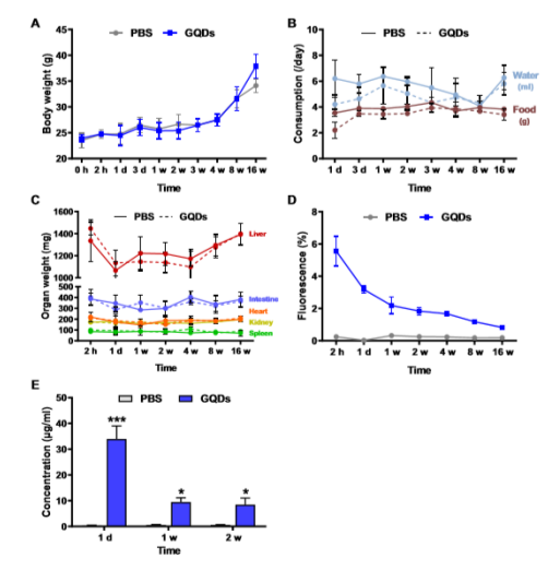 Fig. 3. GQDs從小鼠中排出不會產生毒性。