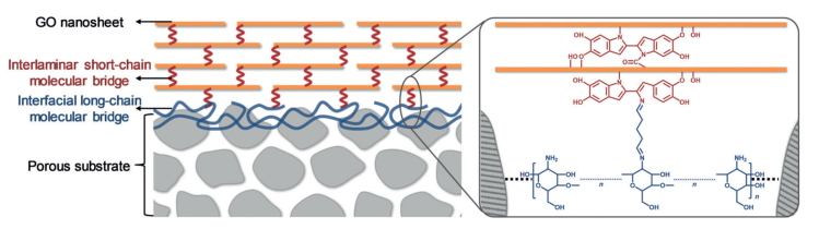 Figure 1. 通過分層的層間短鏈和界面長鏈分子橋穩定GO膜。