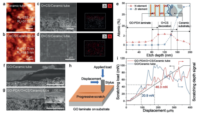 Figure 3. 界面長鏈分子橋接GO膜的粘附特性。