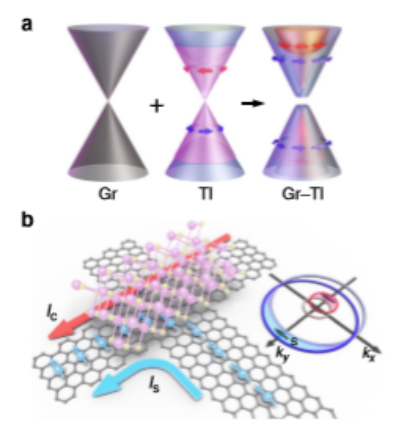 Fig. 1 石墨烯-拓撲絕緣子異質結構中的自旋電偶效應。