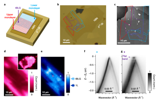 Fig. 3 tBLG的電子結構和平帶色散的可視化。