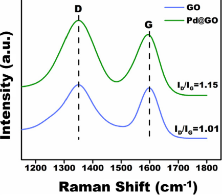Figure 4. GO和Pd@GO催化劑的拉曼光譜。