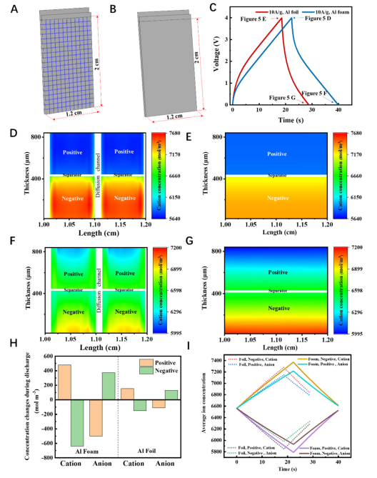 Figure 5. 泡沫鋁和鋁箔作為集電器SC裝置的仿真結果。