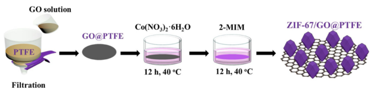 Figure 1. 制備ZIF-67/GO膜的原理示意圖。