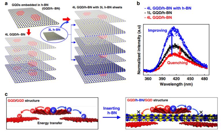 Fig. 4 具有h-BN勢壘的垂直堆疊GQD/h-BN層。