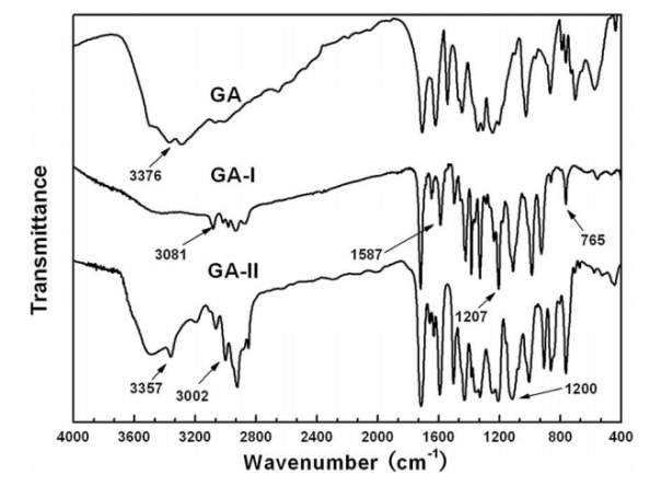 Fig. 1 GA,GA-I,GA-II的FT-IR光譜。