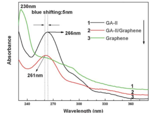 Fig. 4 GA-II,GA-II /石墨烯和石墨烯懸浮液的紫外可見光譜