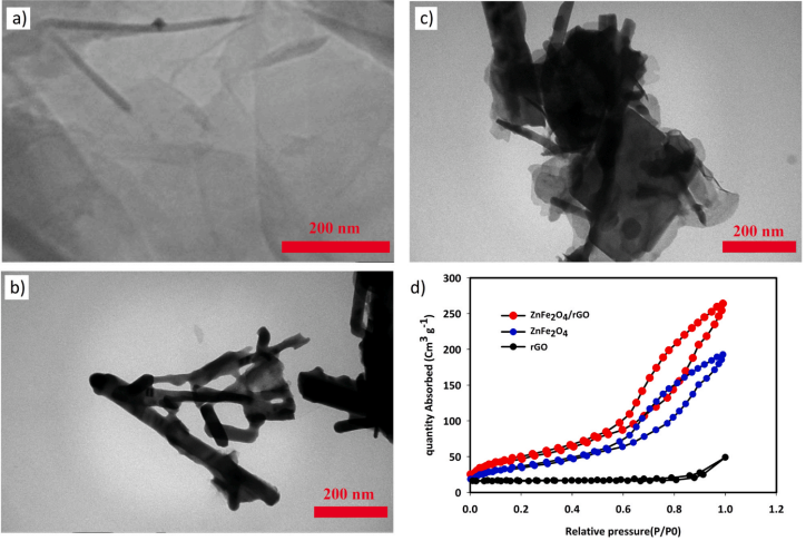 4-rGO經過穩定性測試后的SEM圖片(d);ZnFe