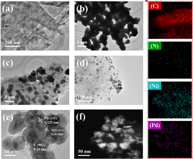 3N的HAADF-STEM圖像以及C、N、Ni和Pd的相應元素映射圖像。