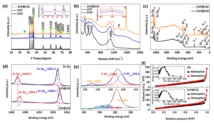 Figure 2. ZnP@LIG納米復(fù)合材料的形態(tài)和結(jié)構(gòu)表征。
