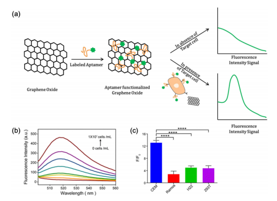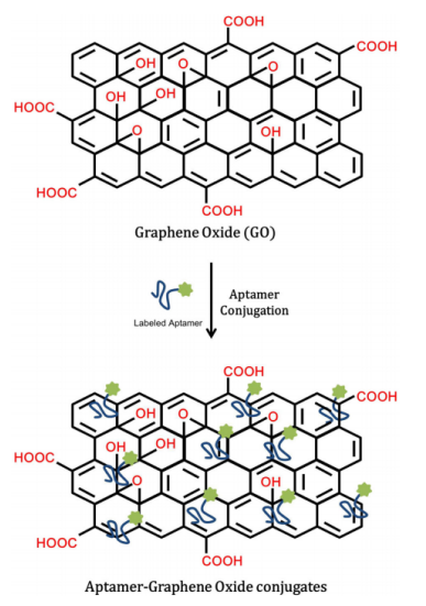 具有大表面積,多價結構的2D氧化石墨烯(GO)可以通過疏水/π堆積相互作用。其中,核酸適體體積小,化學穩定性好,免疫原性低,能與靶分子結合,具有較高的親和力和特異性。通過將適體與GO整合而合成的GO-適體共軛材料,可以為基于抗體的癌癥診斷和治療策略提供更好的選擇。此外,GO出色的熒光猝滅特性可用于開發高效的熒光感應平臺。在這篇綜述中,討論了用于檢測主要癌癥生物標志物的GO-適體共軛材料的最新進展。