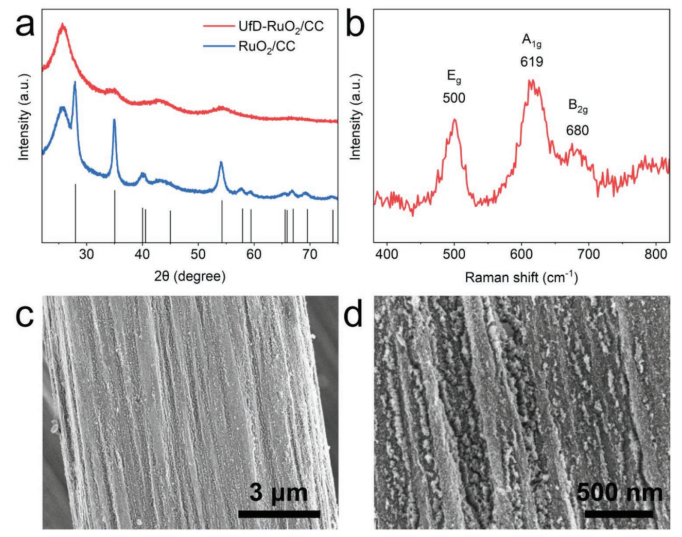 2/CC的拉曼光譜。c,d)UfD-RuO