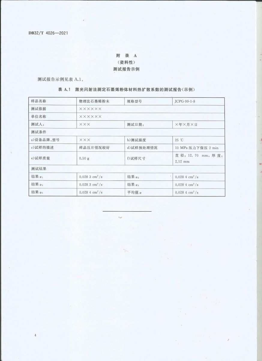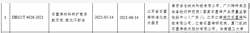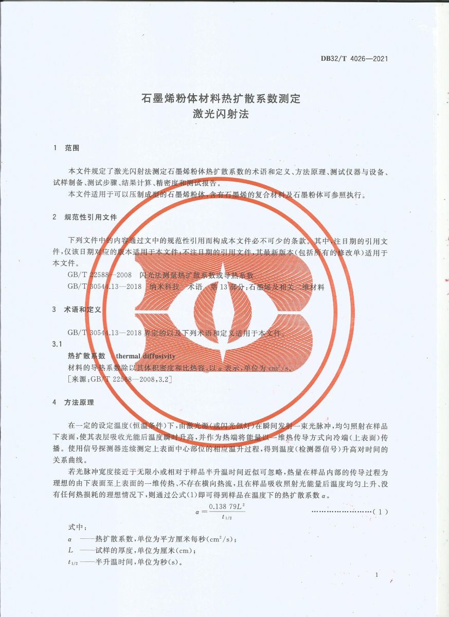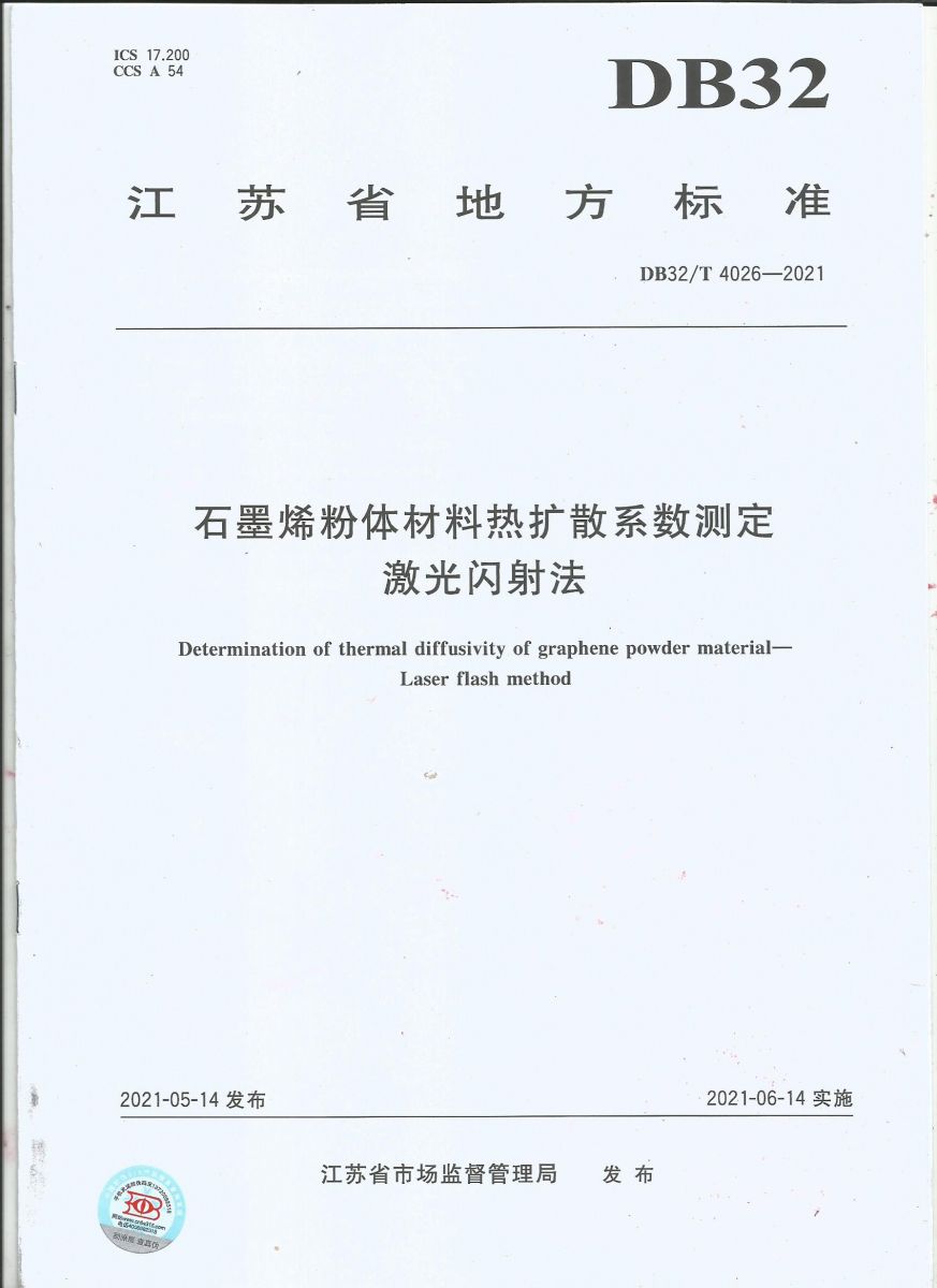 我司主導(dǎo)的江蘇省地方標(biāo)準(zhǔn)《4026-2021石墨烯材料熱擴(kuò)散系數(shù)測(cè)定 激光閃射法》正式頒布