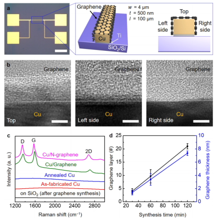 Fig. 1 石墨烯封裝銅互連的特性。