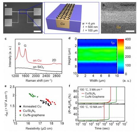 Fig. 2 銅互連上的N摻雜石墨烯的特性。