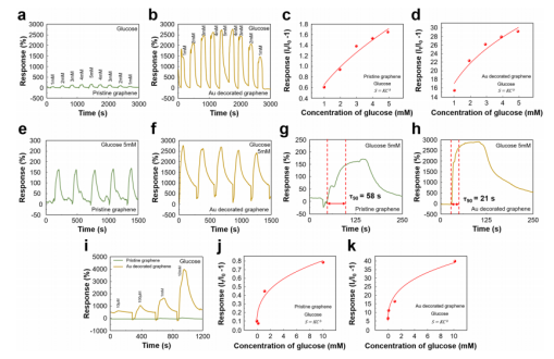 Fig. 4 石墨烯SFET的葡萄糖檢測特性。