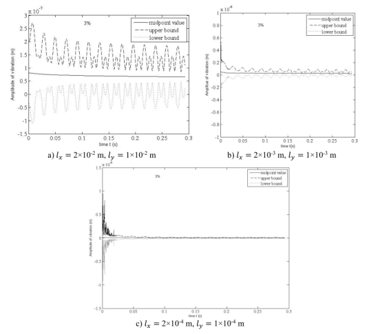 將石墨烯薄片的小尺度參數視為不確定參數,基于非局部理論建立了含不確定參數的簡支石墨烯薄片振動方程。利用三角函數級數解和區間算子得到了簡支石墨烯薄片響應的上下界。研究了不同維數下響應的不確定度。數值結果表明,同樣不確定性程度的小尺度參數,響應的不確定性水平將隨著石墨烯薄片維度的增加而減少,。在小尺度效應消失之前,小尺度參數的小不確定度會導致較大的不確定性的響應。