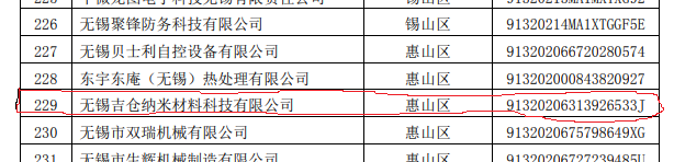 無錫吉倉納米材料科技有限公司被選入無錫市2021年第一批市高新技術企業培育庫擬入庫企業名單