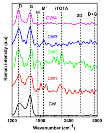 Figure 2. 不同樣品在1200到3000 cm-1波數范圍內的拉曼光譜比較。