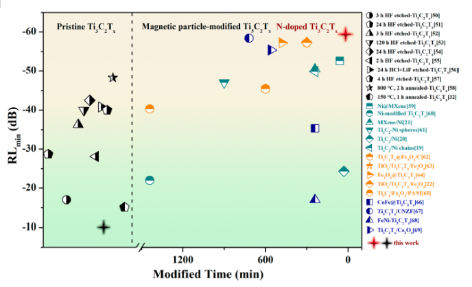x在10.56 GHz時的最小反射損耗(RLmin)為59.20 dB,顯著高于原始Ti