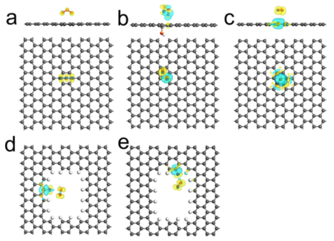 3型缺陷石墨烯,(c) 空位型缺陷石墨烯,(d) 鋸齒形邊緣型缺陷石墨烯 ,和(e)扶手椅邊緣型缺陷石墨烯。