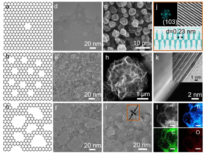 2-2微球橫斷面上的高角度環形暗場掃描透射電子顯微鏡(HAADF-STEM)圖像。(l)三維e-Ti