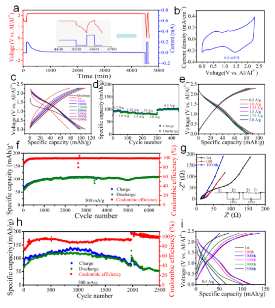 3+)在鋁電池中的循環(huán)性能。(g) V